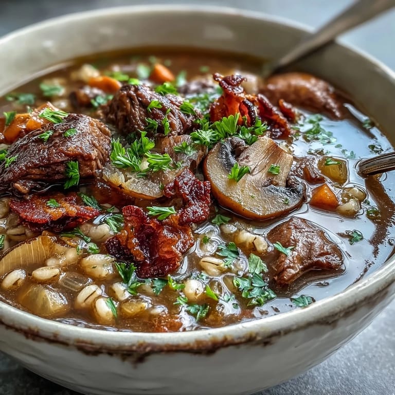 I made this for my sister after she'd had a rough week, and she sat at my kitchen counter with a bowl in both hands like it was the warmest hug. The mushrooms had turned silky, the beef fell apart just looking at it, and the barley had this gentle, almost sweet nuttiness that grounded everything. She came back two days later asking if I had leftovers. Sometimes the best recipes are the ones that convince people you care.