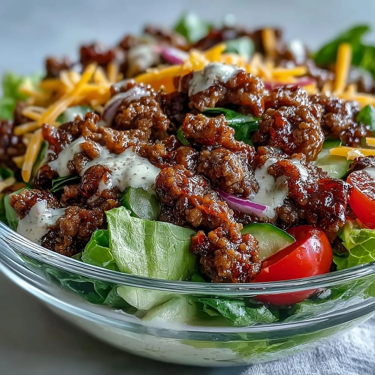 Save My friend texted me at 2 PM asking if I could whip up something that tasted like a Big Mac but wouldn't derail her new eating plan, and honestly, I was skeptical until I started layering this bowl together. The funny thing about deconstructing a burger is realizing how much of what you love about it has nothing to do with the bread—it's all in that special sauce, the crispy beef, the cool lettuce hitting warm meat. I threw this together on a random Tuesday and ended up making it three times that week because it's genuinely quick, filling, and tastes like a cheat meal that isn't.