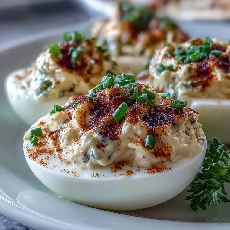 Save Classic Deviled Eggs with Paprika and Chives are a timeless appetizer that brings a touch of elegance to any gathering. With their creamy yolk filling and vibrant garnish, they are as visually appealing as they are delicious, making them a staple for picnics or festive brunches.