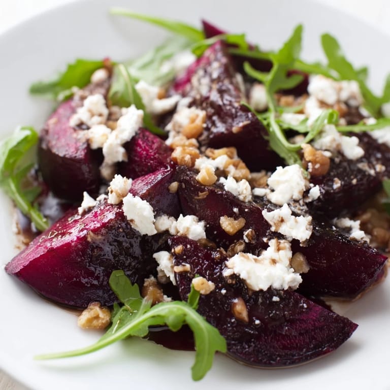 Save I knocked over a bowl of roasted beets once, and the magenta juice spread across my kitchen counter like watercolor paint. Instead of panicking, I just stood there, mesmerized by how something so earthy could look so beautiful. That moment reminded me why I keep coming back to this salad: it's as much about the color and texture as it is about the taste. The creamy goat cheese against those sweet, jewel-toned beets makes every bite feel like a small celebration. It's become my go-to whenever I want something that feels special without the fuss.